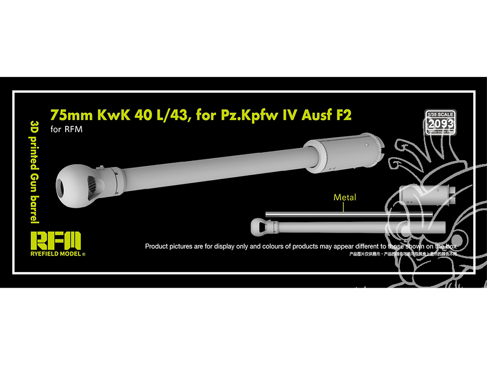 Rye Field Model maquette militaire 2093 Canon résine 3D 75mm KwK 40 L/43 pour Pz.Kpfw.IV Ausf F2 1/35