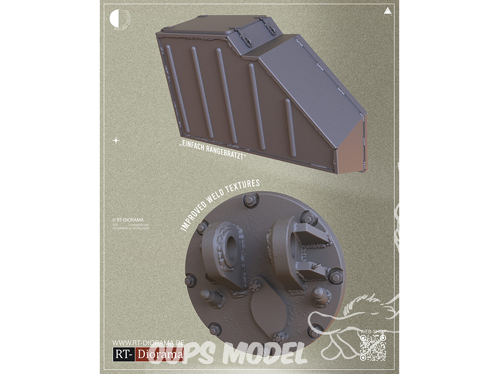 Ce kit de détails imprimé en 3D est conçu pour reproduire les caractéristiques uniques d'un Panther Ausf. G produit par MNH en fin de guerre, durant les derniers mois de la Seconde Guerre mondiale. MNH (Maschinenfabrik Niedersachsen Hannover) était réputé pour l'intégration d'éléments distinctifs sur ses chars de fin de production. Le kit comprend des pièces très détaillées, telles que les échappements Flammenvernichter de fin de guerre et les coffres arrière de type MNH, présents sur les chars produits par MNH début 1945. Idéal pour les maquettistes historiques souhaitant recréer fidèlement un Panther G MNH de fin de guerre à l'échelle 1/35.
