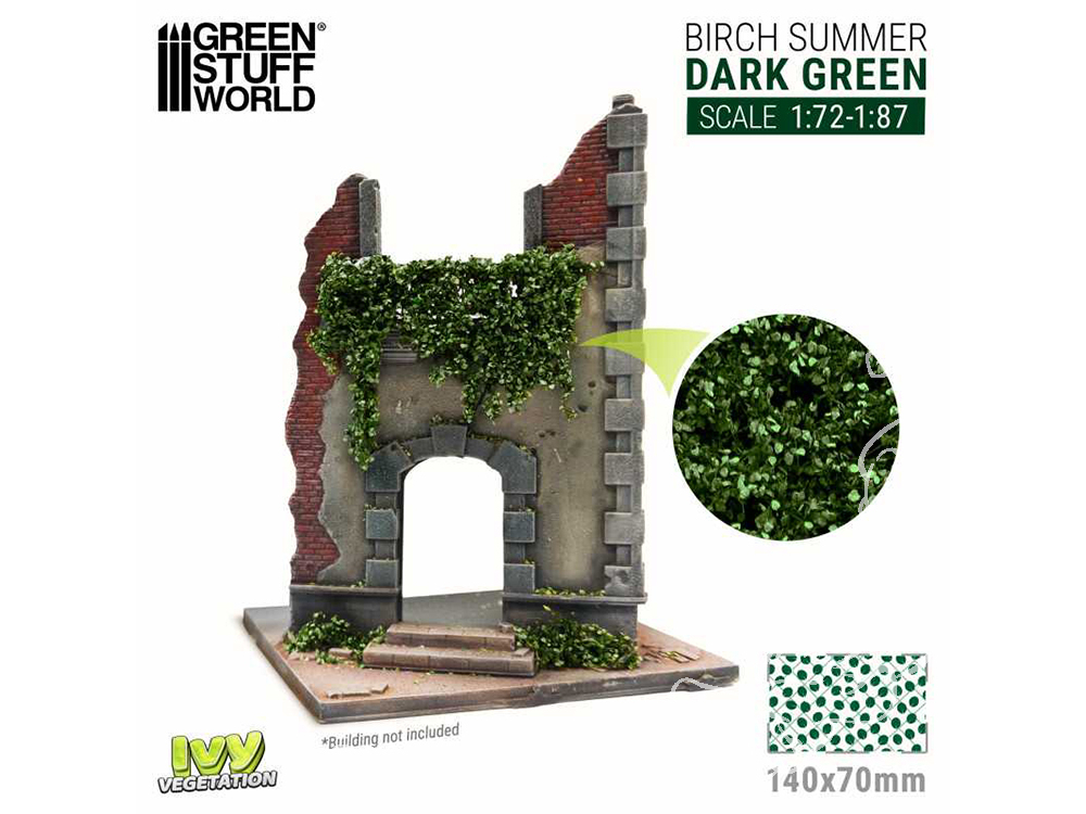 Les feuillage lierre de Green Stuff World sont des feuilles spécialisées avec des feuilles de différents types, couleurs et tailles conçues pour reproduire l'aspect des feuilles de vigne et le feuillage d'un arbre à l'échelle miniature.