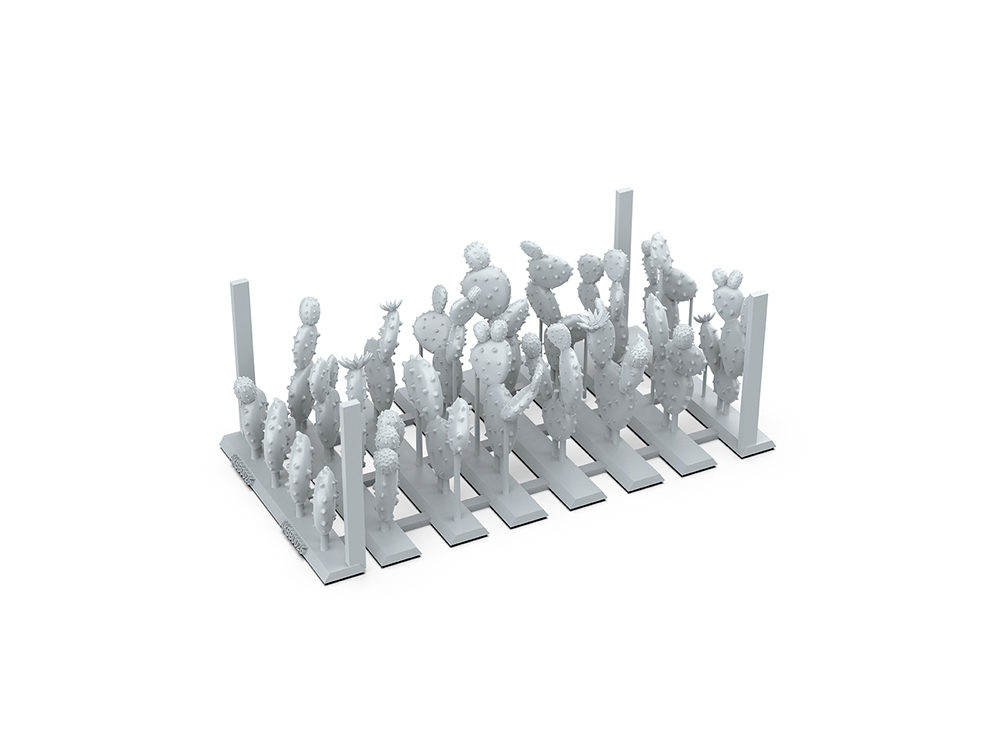 Cactus aux tiges charnues et plates en forme de pagaie, recouvertes d'épines et de petits poils raides. Ils peuvent être utilisés sur les socles pour décorer des armées sur le thème du désert, comme les orcs, et sont également parfaits pour planter le décor dans tout environnement aride.