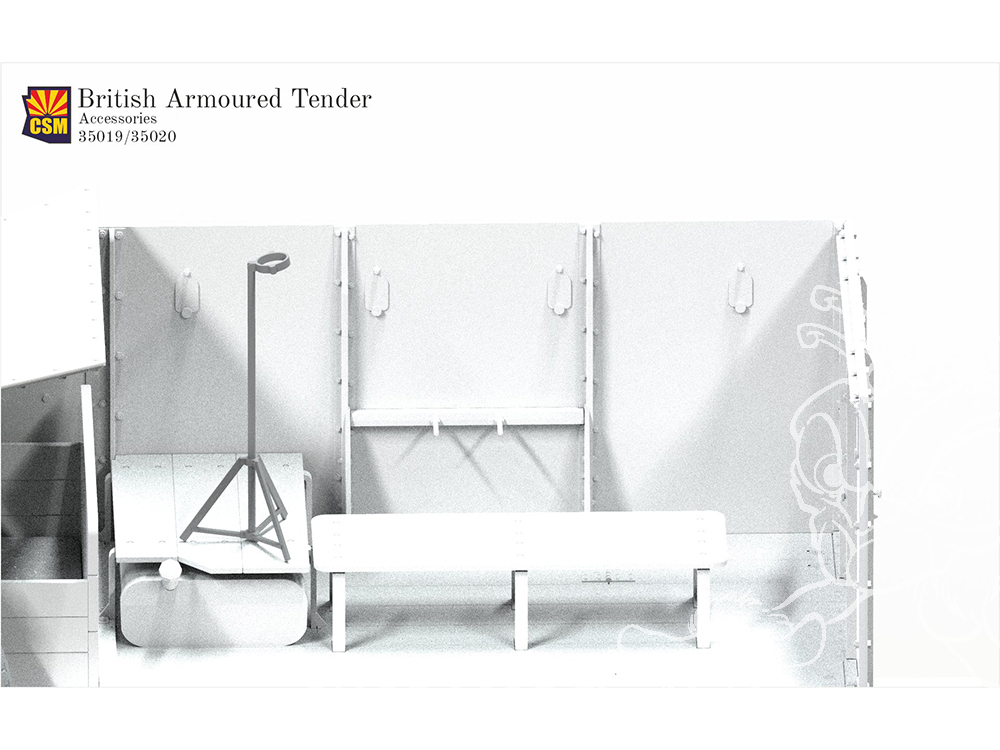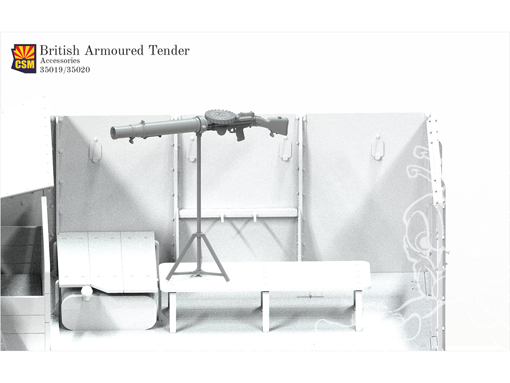 Ensemble d'accessoires imprimés en 3D comprenant une mitrailleuse Lewis montée sur un support antiaérien, conçu pour être utilisé avec les modèles de véhicules blindés britanniques.