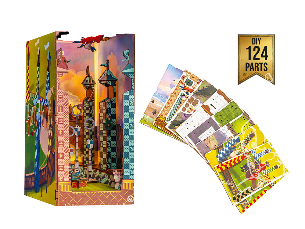 Le kit de maquette « Tiny Adventures Quidditch Field » apporte la fascination du jeu de Quidditch de Harry Potter directement dans votre bibliothèque. Ce Book Nook est un monde miniature détaillé qui donne vie à la scène emblématique du Quidditch avec 124 composants fabriqués avec précision. Qu’il s’agisse d’un accroche-regard décoratif entre les livres ou d’un objet de collection à part entière, ce kit combine l’artisanat créatif et la magie de Poudlard.