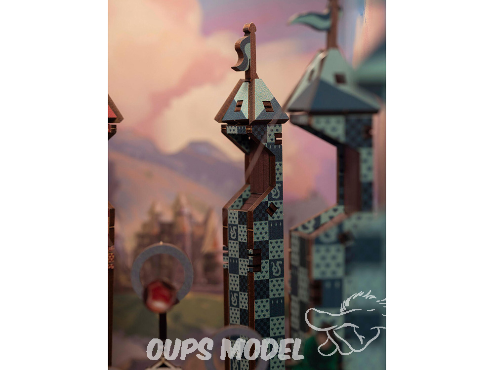 - 124 pièces miniatures fabriquées à la main pour une représentation détaillée du terrain de Quidditch