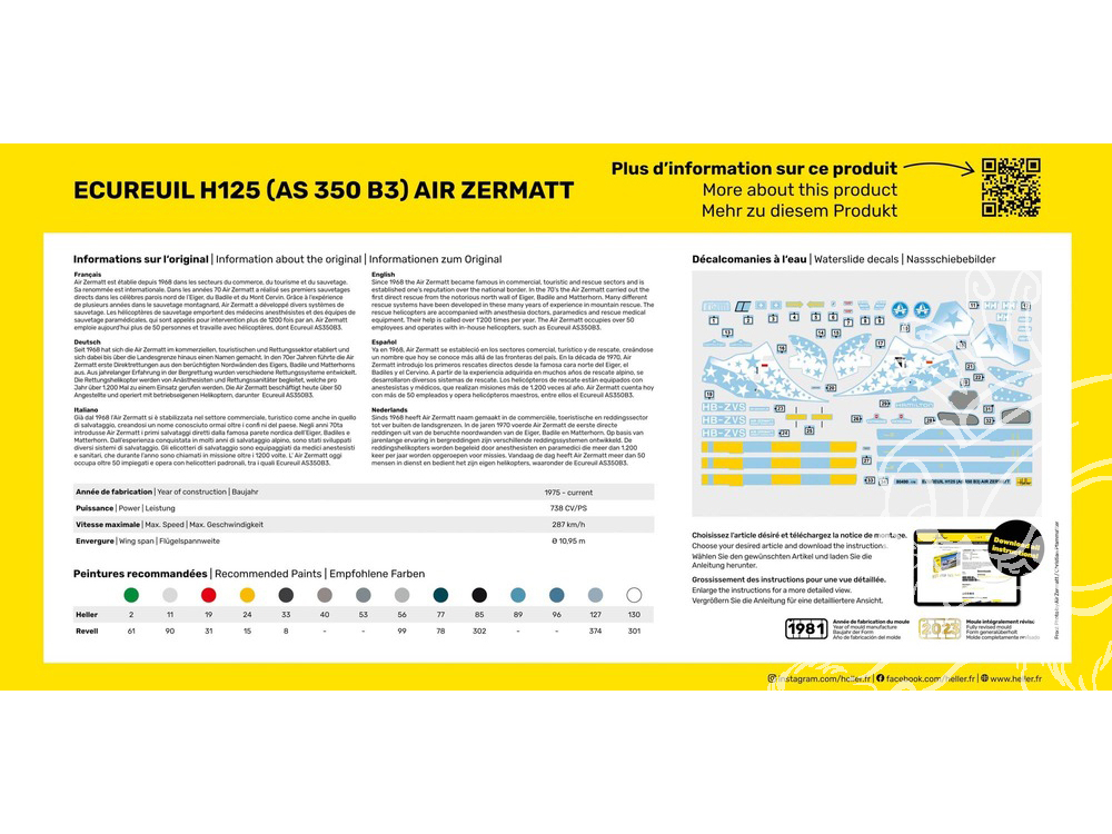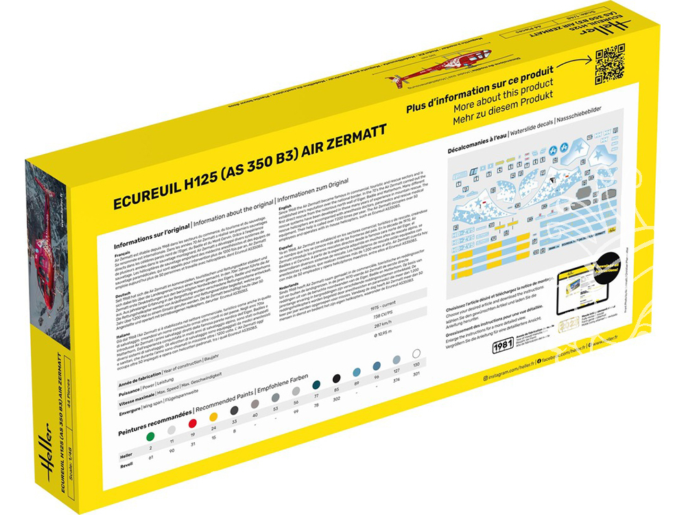Heller maquette helicoptére 56490 STARTER KIT AS350 B3 Ecureuil inclus colle et peintures 1/48