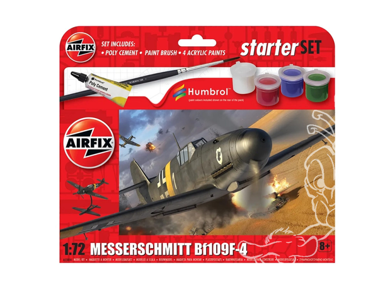 Airfix maquette A55014 Starter Set Messerschmitt Bf109F-4 inclus peintures principale colle et pinceau 1/72