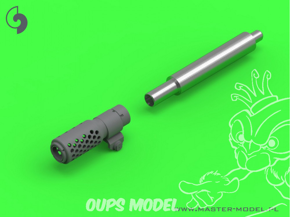 Le kit comprend un canon en aluminium usiné et un frein de bouche imprimé en 3D.