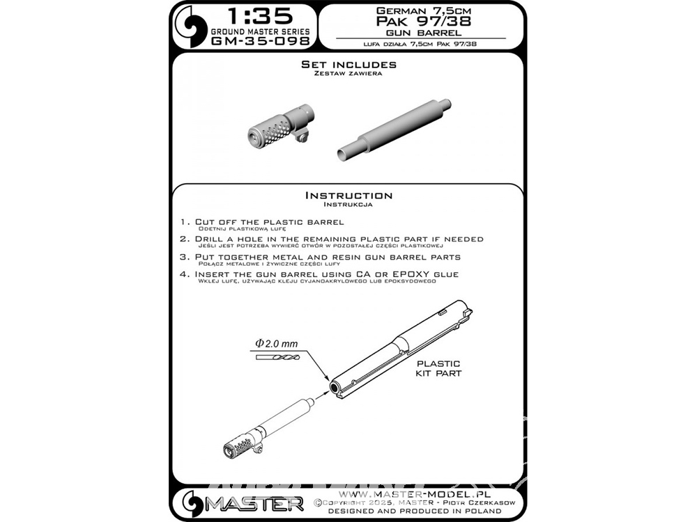 Master Model GM-35-098 Canon pour Pak 97/38 de 7,5 cm Allemand kits Italeri et Dragon 1/35