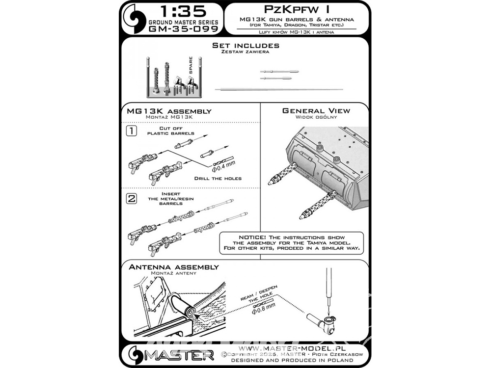 Master Model GM-35-099 Canons et antennes de mitrailleuse MG-13K pour PzKpfw I kit Tamiya Dragon Tristar et autres 1/35