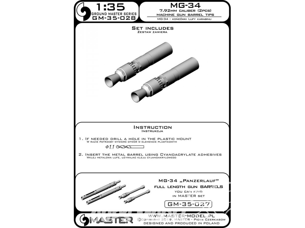 Master Model GM-35-028 MG-34 7.92mm Caliber x2 - Embouts de barils Machine gun 1/35