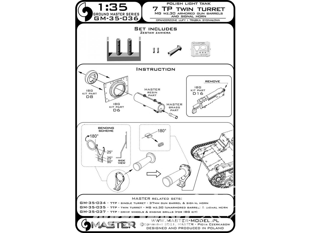 Master Model GM-35-036 Polish Light Tank 7 TP Twin Turret - Canon MG wz.30 Armored & avertisseur sonore 1/35