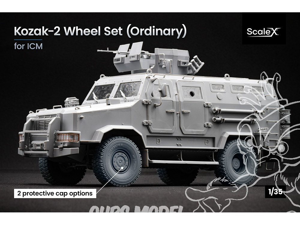 Pour rendre votre modèle de Kozak-2 vraiment convaincant, nous avons mené des recherches approfondies sur les roues réelles de ce véhicule blindé — en analysant des photos de référence, des plans techniques et des exemplaires physiques disponibles. Cela nous a permis de les reproduire avec une précision maximale : chaque détail, courbe et irrégularité reflète fidèlement la machine réelle.