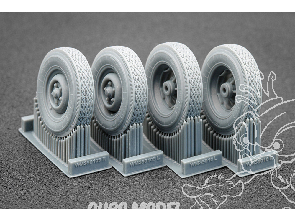 Chaque élément a été conçu à partir de prototypes réels : nous avons soigneusement étudié des photographies, des dessins techniques et de la documentation afin de reproduire fidèlement la bande de roulement, les détails de flancs et la structure des jantes. L’impression 3D en résine de haute qualité garantit une géométrie précise et un niveau de détail que les roues standards des kits ne peuvent tout simplement pas égaler.