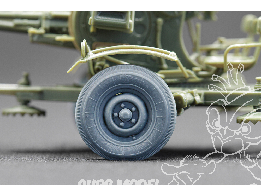 Pour rendre votre modèle du légendaire canon antiaérien ZU-23-2 encore plus réaliste, nous avons créé un set de roues imprimées en 3D hautement détaillées comprenant deux roues standard (ordinaires) et deux roues avec effet affaissé. Cette combinaison permet de recréer le poids réaliste de l’arme et d’obtenir une position correcte du châssis dans les dioramas ou modèles d’exposition, dans différentes configurations de tir.