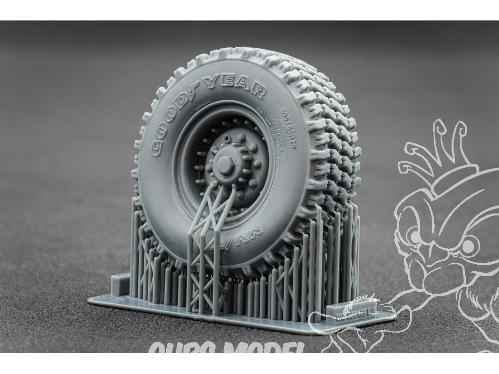 L’impression 3D a permis un niveau de détail tout simplement impossible à atteindre avec les pneus en caoutchouc standard inclus dans les kits typiques. Une fois installées, ces roues donnent à votre modèle une apparence convaincante — transmettant une sensation de poids, d’utilisation et de véritable échelle.