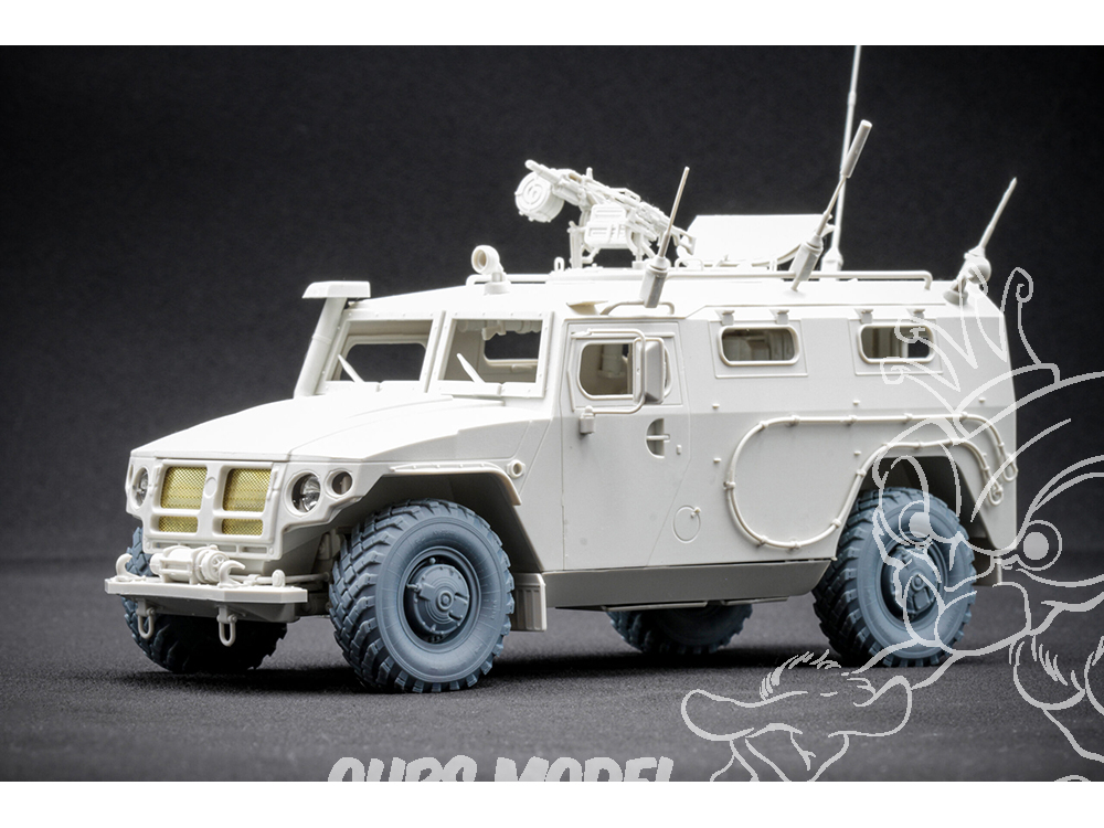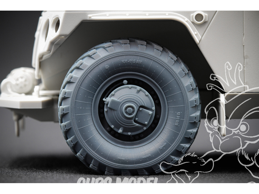 Pour rendre votre modèle de GAZ Tiger vraiment convaincant, nous avons mené une étude détaillée des roues réelles utilisées sur ce véhicule blindé — en examinant des photos, des plans et des références physiques disponibles. Cela nous a permis de les recréer avec une précision maximale : chaque détail, courbe et imperfection reflète fidèlement le design réel.