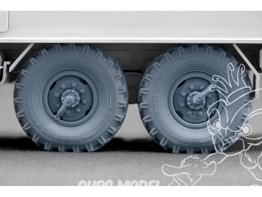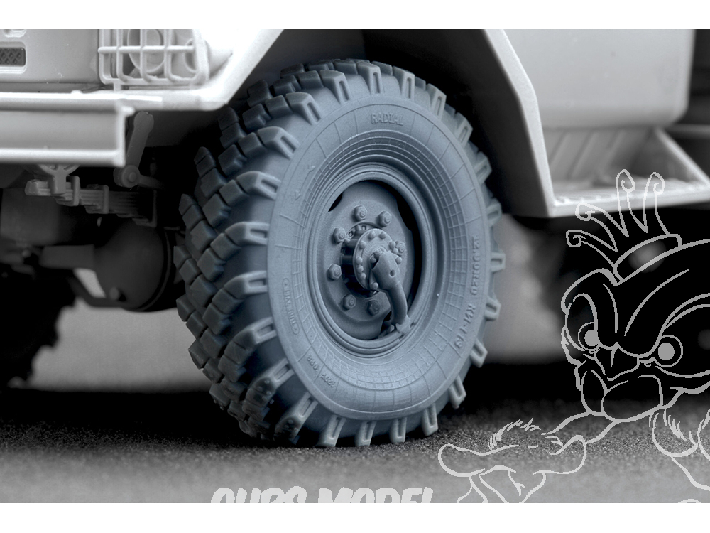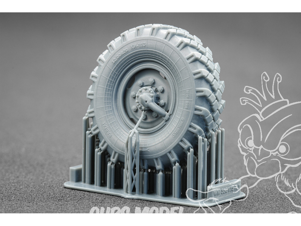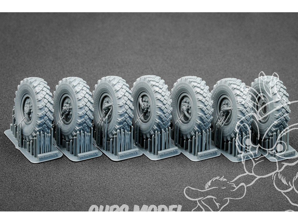 Chaque ensemble est basé sur des prototypes réels : nous avons soigneusement étudié des photographies, des plans et de la documentation technique afin de reproduire avec précision le motif de la bande de roulement, les formes précises de la jante et les détails des flancs. La technologie d’impression 3D en photopolymère nous a permis d’atteindre une netteté et une qualité que les roues en plastique standard des kits classiques ne peuvent égaler.