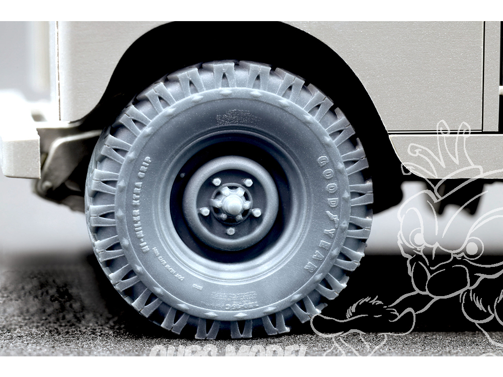 Accessoire maquette militaire en résine imprimé en 3D Land Rover 88 Xtra Grip 7.5 Set de roues affaissées pour kit Ak Interactive ou autre.