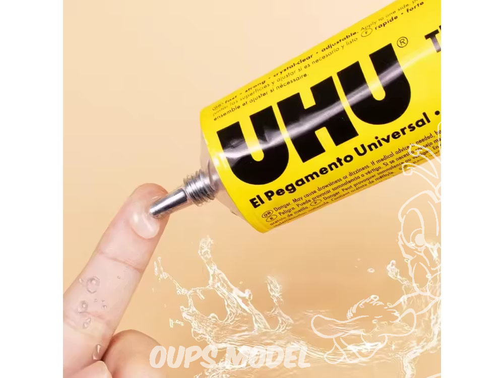 UHU Colle The All Purpose, la colle éprouvée, liquide et cristalline. Garantit un collage propre et sans faire de gouttes. Colle divers matériaux rapidement et durablement. Une fois appliquée, la colle reste temporairement ajustable et ne froisse pas le papier. Idéale pour des applications diverses à la maison, à l’école, au bureau, pour les maquettes, l’artisanat, les travaux de réparation, etc.