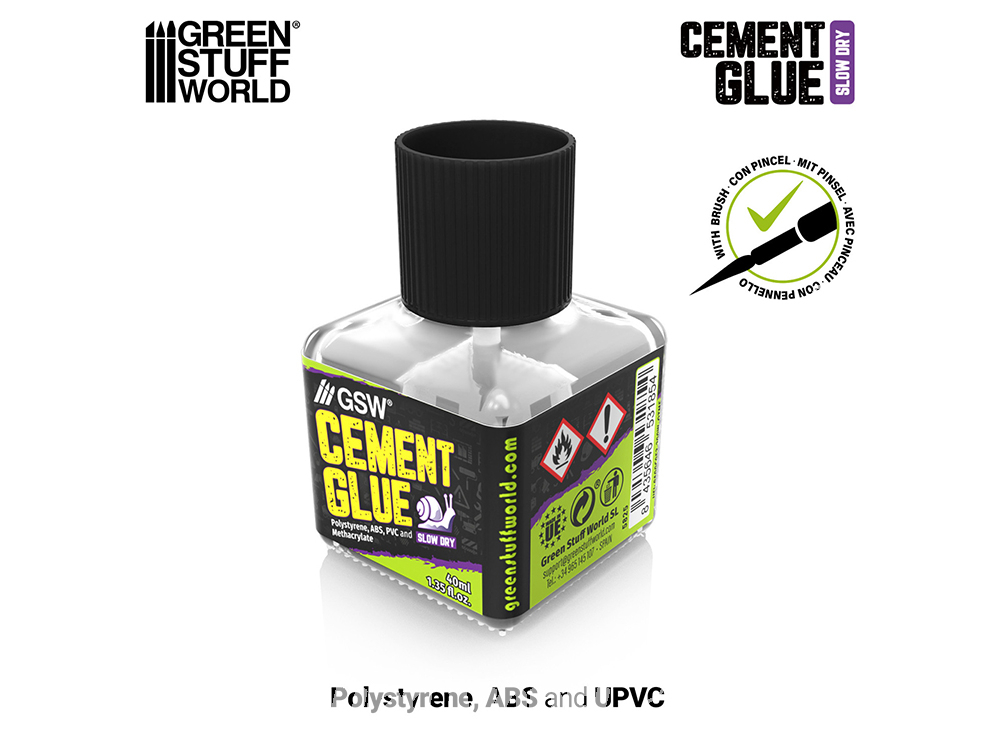 La colle pour plastiques à séchage lent ou Slow Cement Glue de Green Stuff World est spécialement formulée pour assembler des pièces en plastique par fusion chimique, offrant une adhérence forte, durable et propre. Contrairement aux adhésifs instantanés, ce modèle à séchage lent permet de travailler avec plus de précision, idéal pour les grandes pièces ou les structures qui nécessitent des ajustements avant le durcissement final.