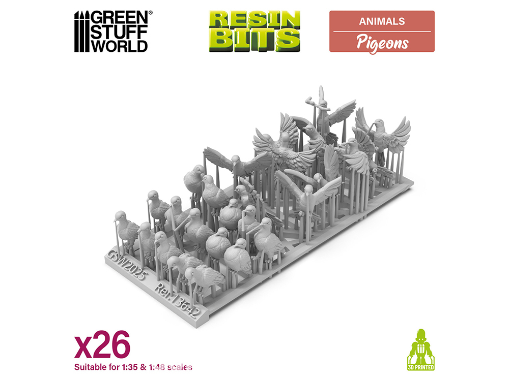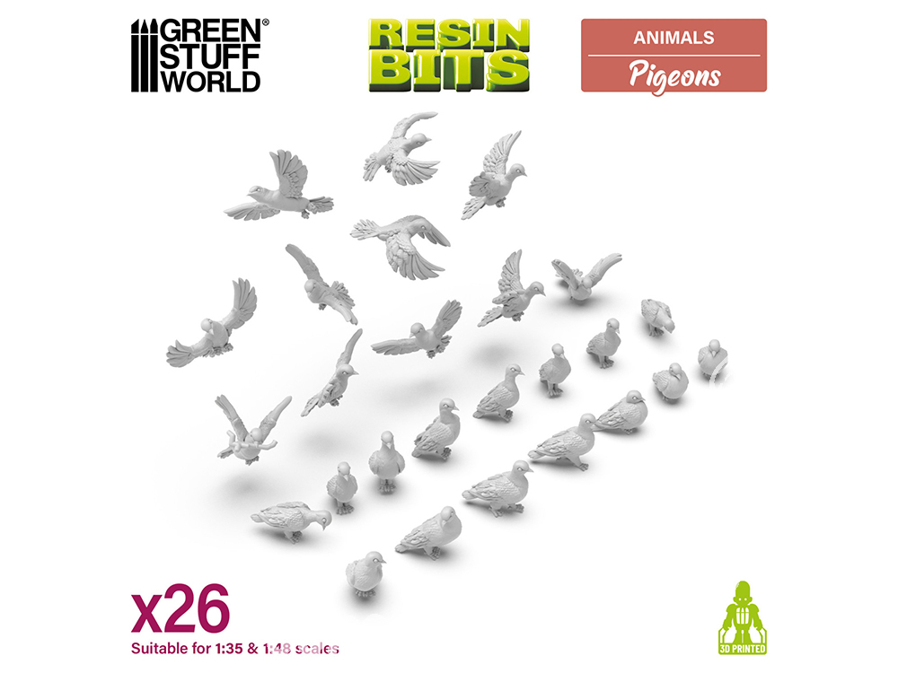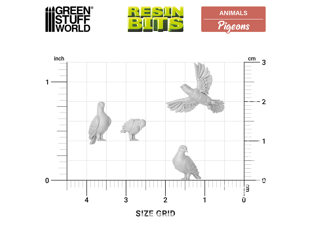 Pigeons miniatures  imprimés en résine 3D pour maquettes et dioramas | Pigeons en résine