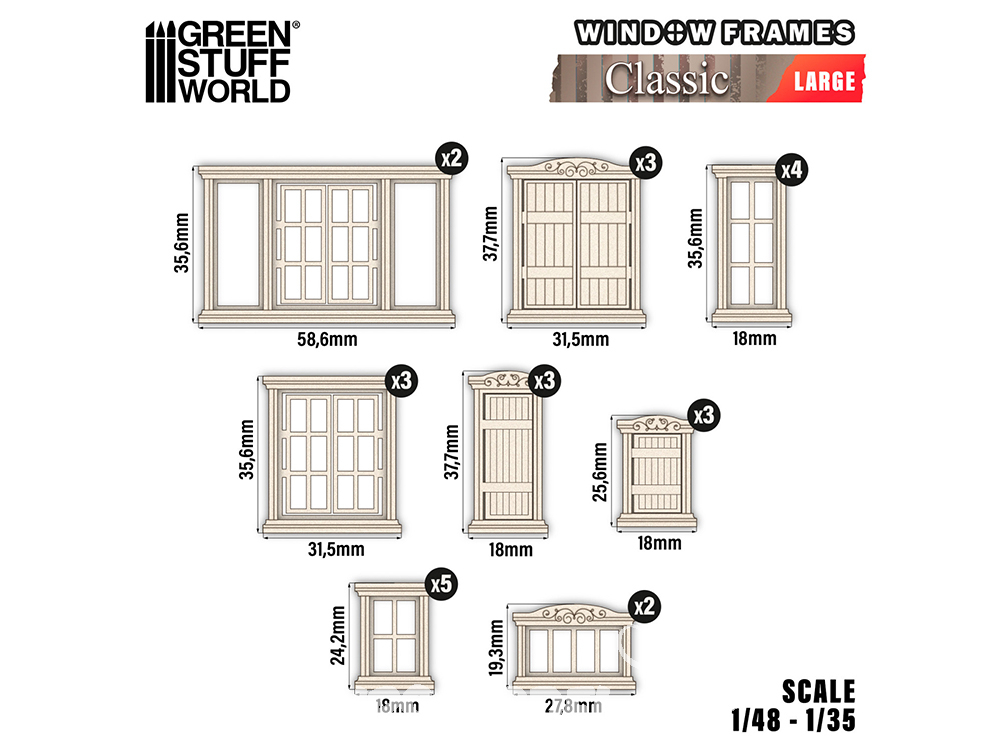 Améliorez ou complétez votre finition en les combinant avec notre collection de vitraux miniatures, disponible exclusivement chez Green Stuff World, pour ajouter une touche étonnante et réaliste à vos créations. Nous recommandons d'utiliser de la colle blanche ou de la colle cyanoacrylate pour l'assemblage et de la peinture maquette pour la peinture, car ces cadres sont livrés non peints.