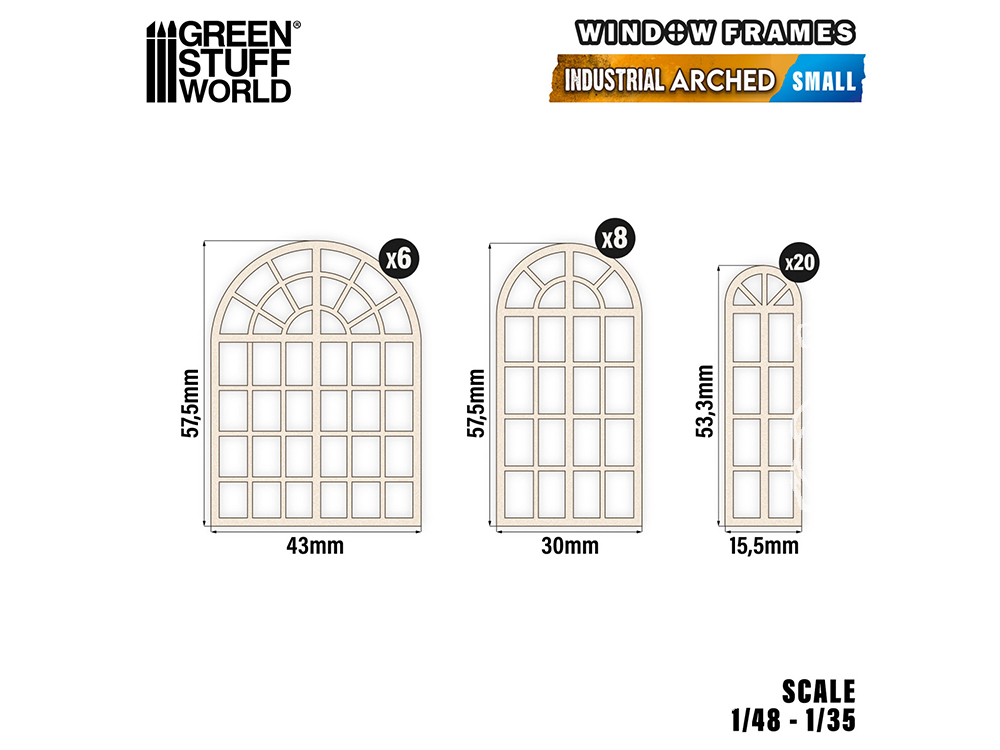 Green Stuff 13708 Fenêtres Industrielles arquées Petites 1/35 1/48