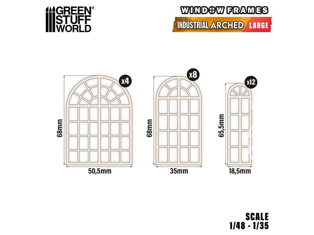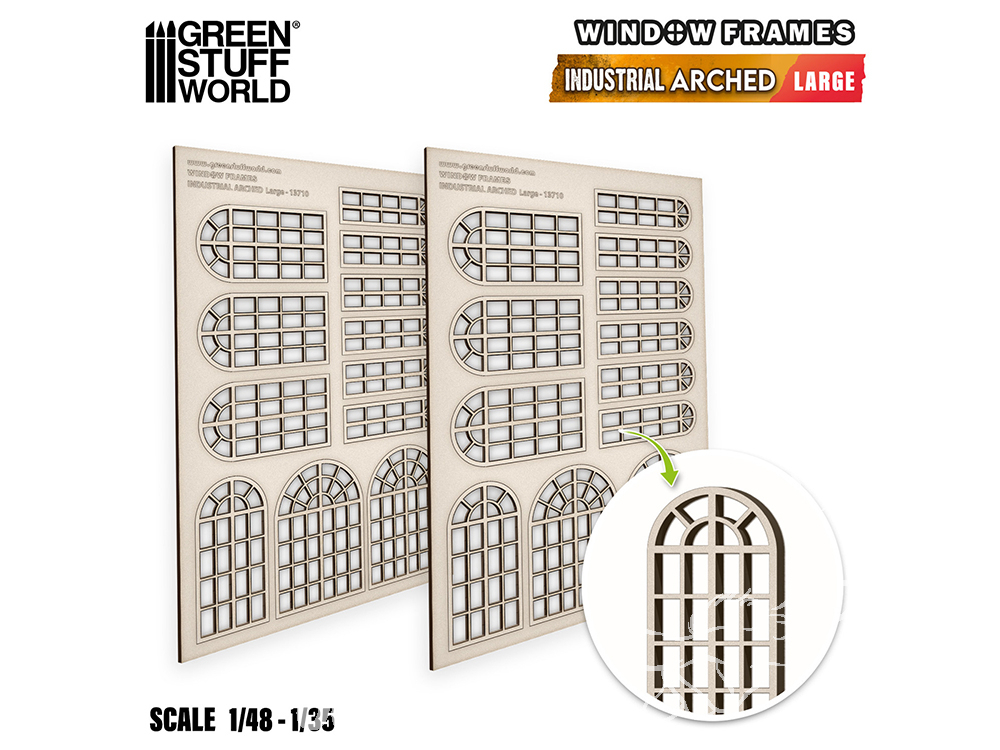 Green Stuff 13707 Fenêtres Industrielles arquées Grandes 1/35 1/48