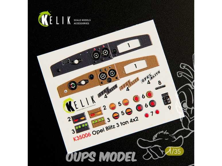 Kelik Decals 3D K35006 Décalques 3D intérieurs camion utilitaire Opel Blitz 3ton 4x2 pour kit Tamiya 1/35