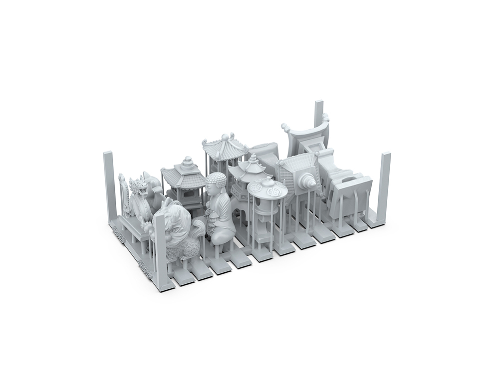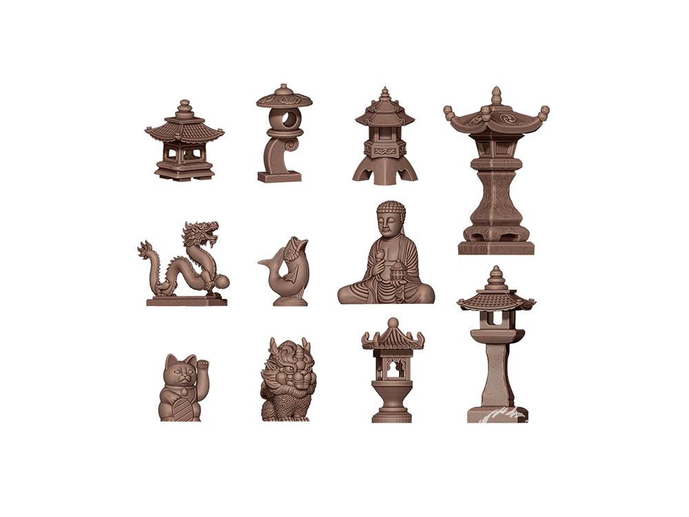 Décorations de jardin japonais, principalement des statues en pierre, à placer sur des socles ou dans des dioramas pour créer une ambiance asiatique dans vos décors.