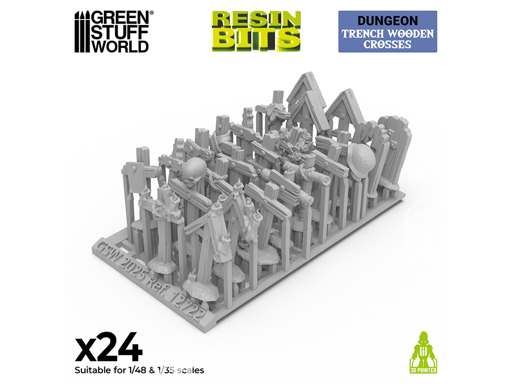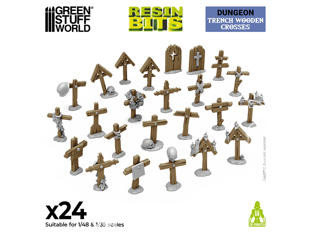 Ce set de bits en résine signé Green Stuff World a été conçu spécialement pour donner une ambiance sombre et saisissante à vos dioramas, tranchées et champs de bataille ravagés. Il comprend des croix de style orthodoxe, avec ou sans toit protecteur, inspirées de structures traditionnelles chargées de symbolisme religieux. L'ajout idéal à tout décor de guerre ou de dark fantasy.