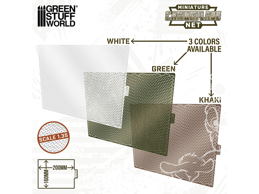 Améliorez le réalisme de vos modèles réduits de chars grâce aux filets de camouflage modernes de Green Stuff World, spécialement conçus pour les véhicules contemporains, les machines de guerre et les avant-postes militaires à l'échelle 1/35.
