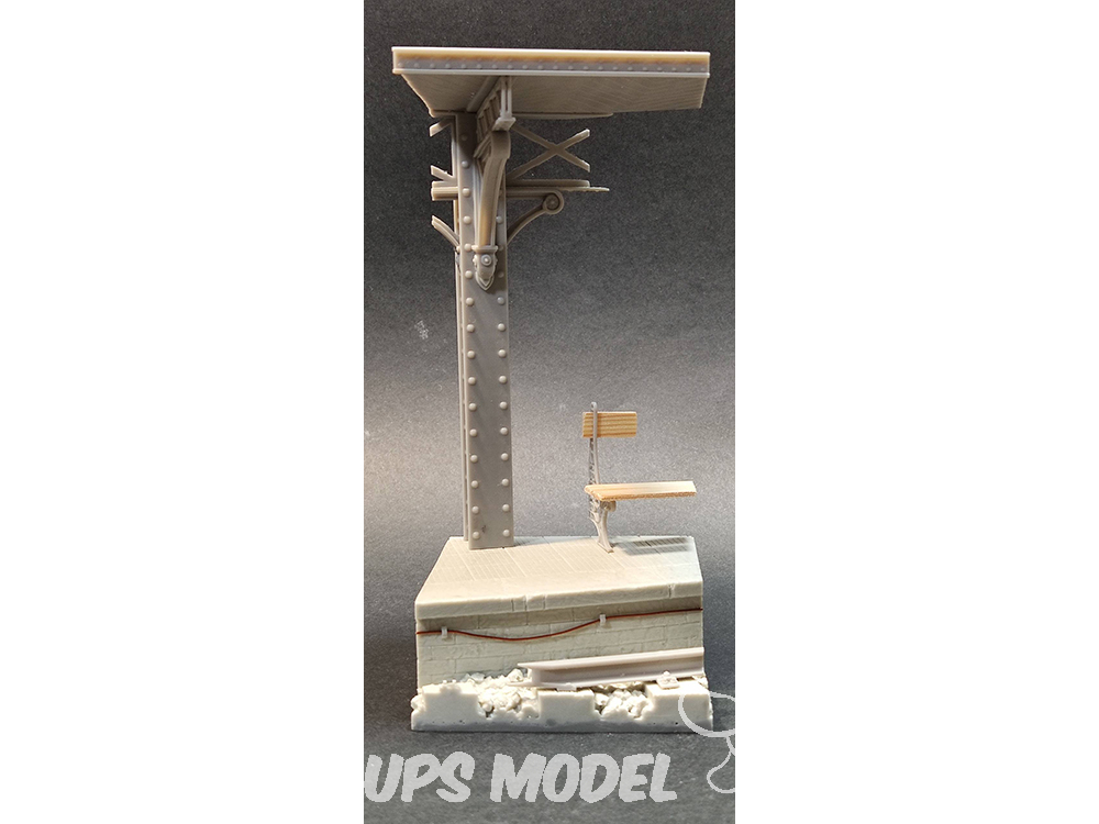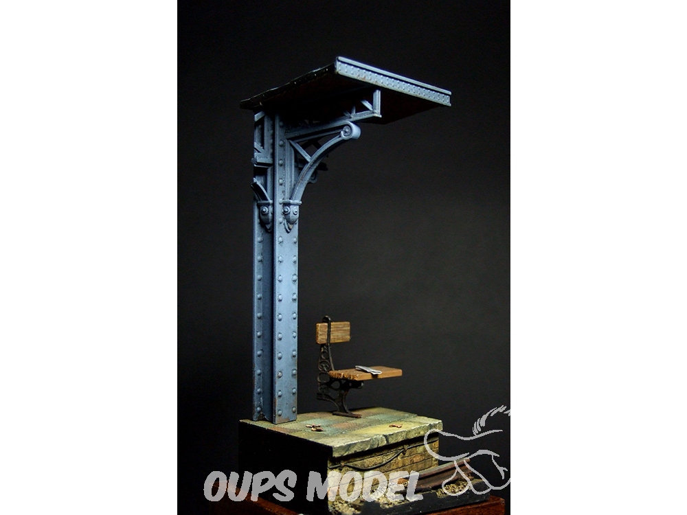 Voici notre magnifique socle pour figurines de quai de gare. Ce kit détaillé vous permettra de recréer des scènes ferroviaires réalistes et captivantes. Le socle comprend des éléments tels qu'une section de structure métallique et un banc, ajoutant une touche de réalisme et d'atmosphère à vos créations.