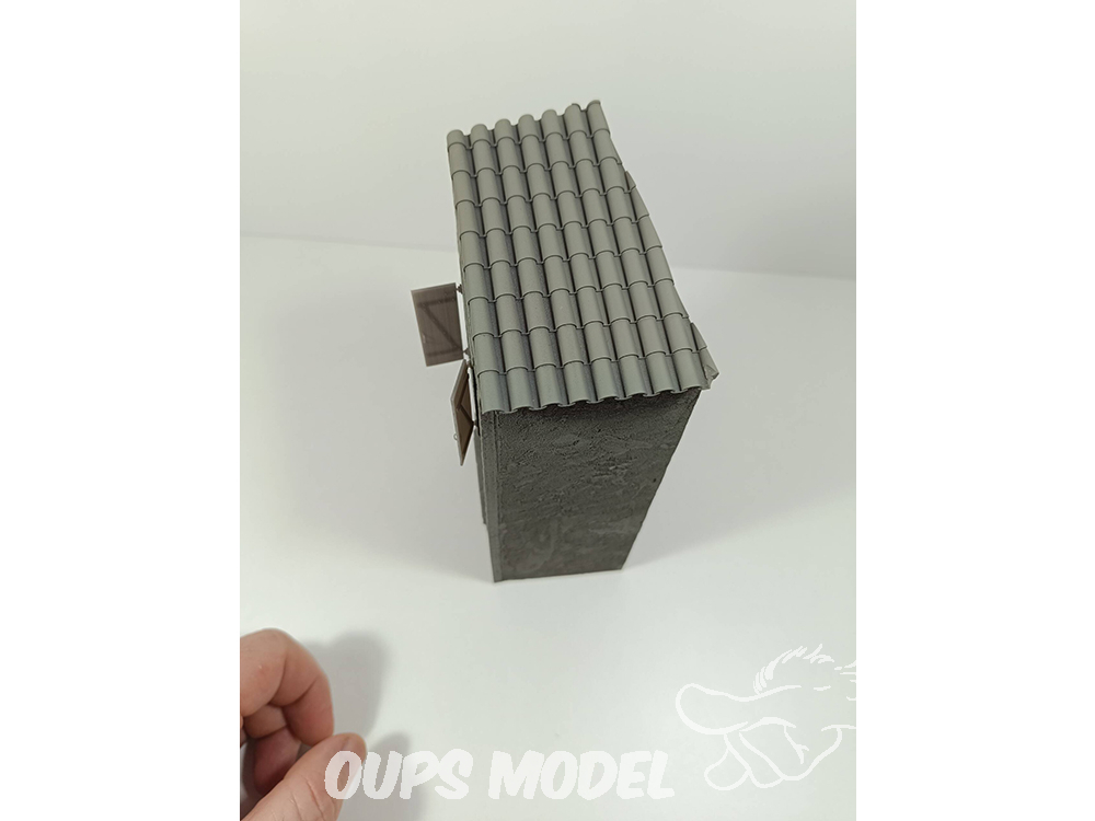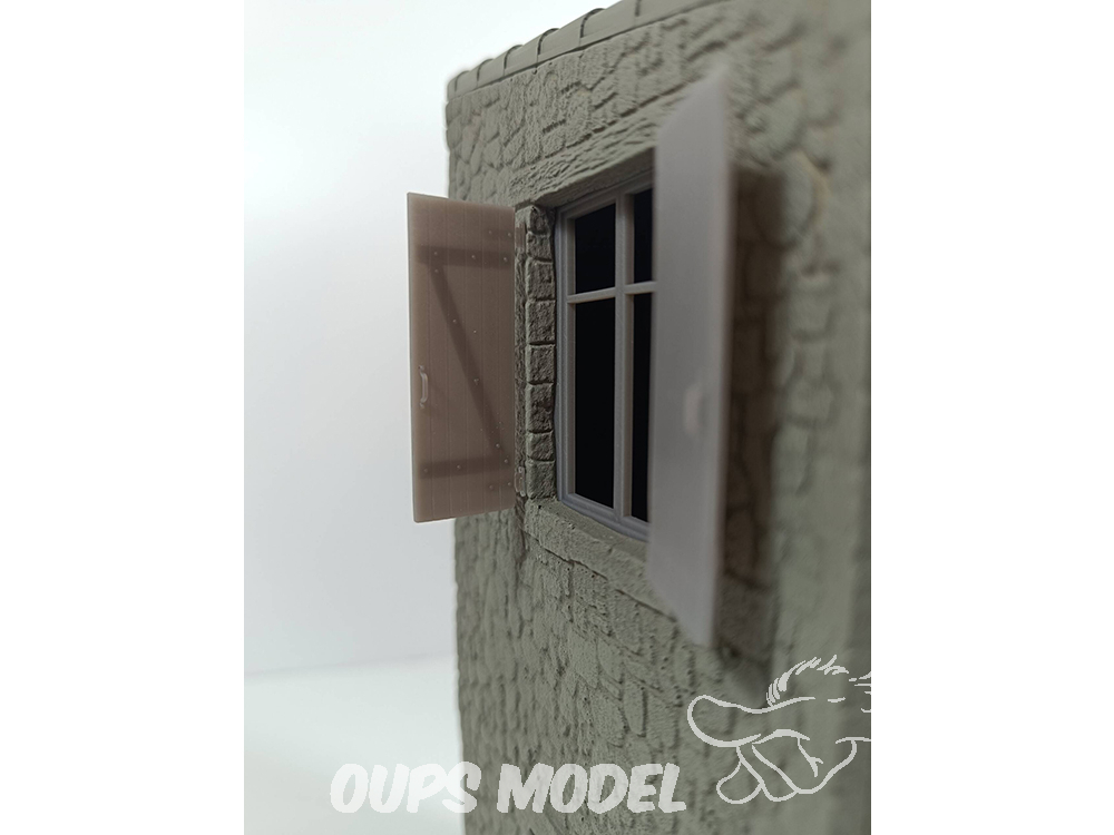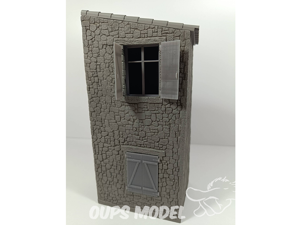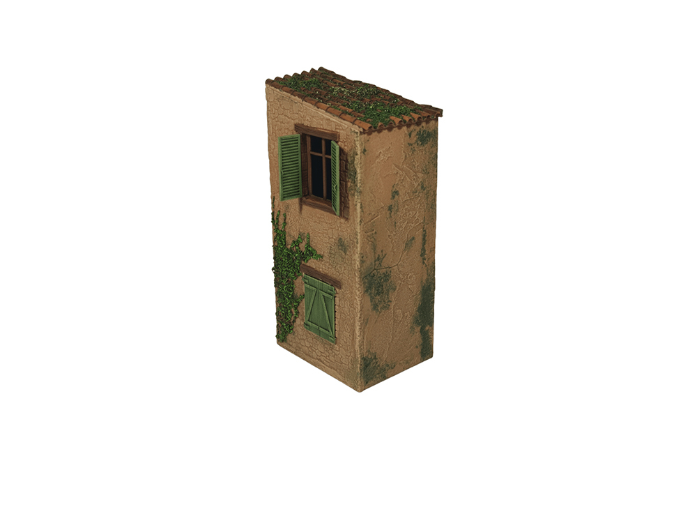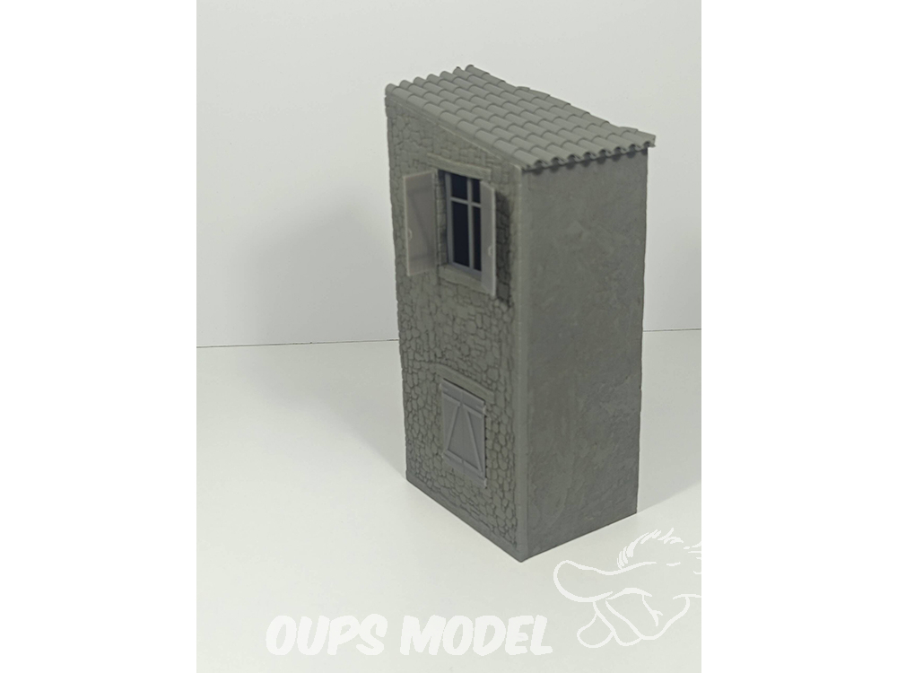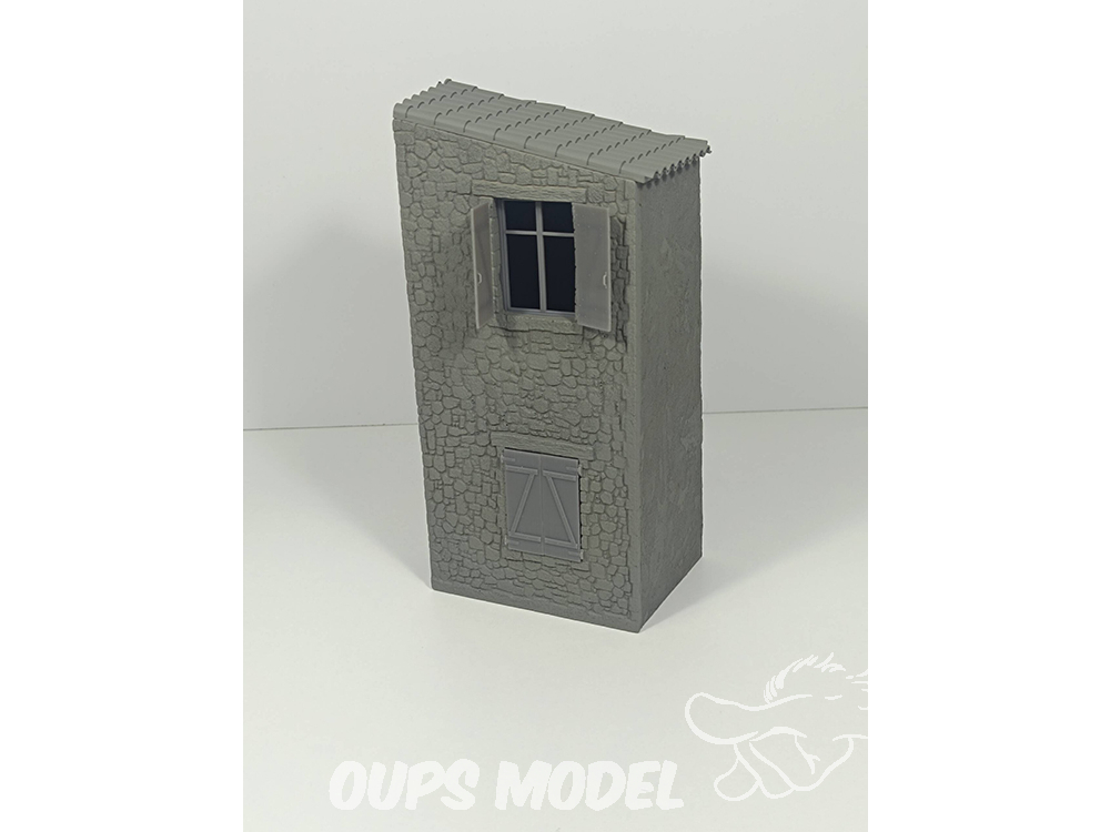 Vivienda de dos plantes con ventanas  a escala 1:35, en resina y detalles accesorios en 3d.
