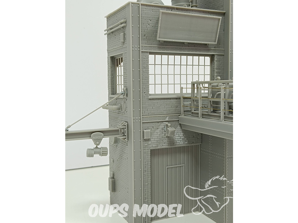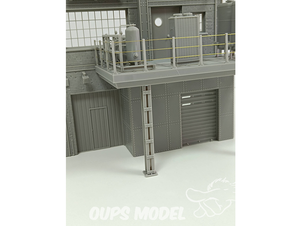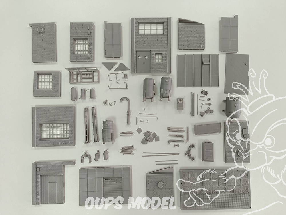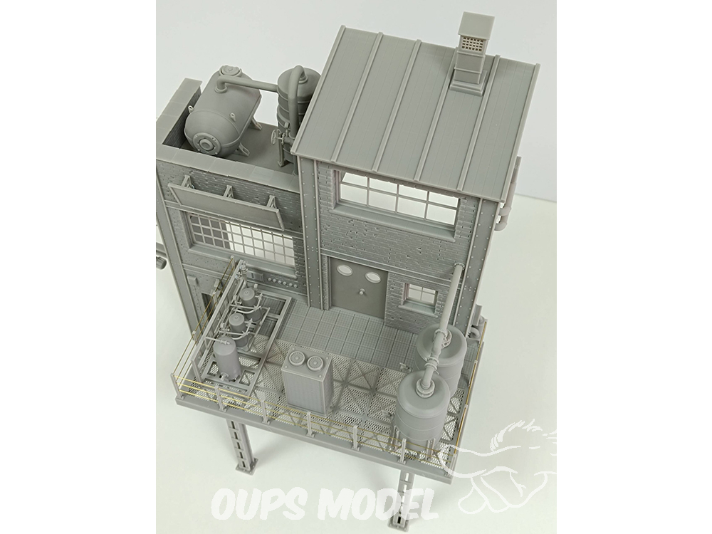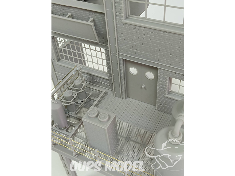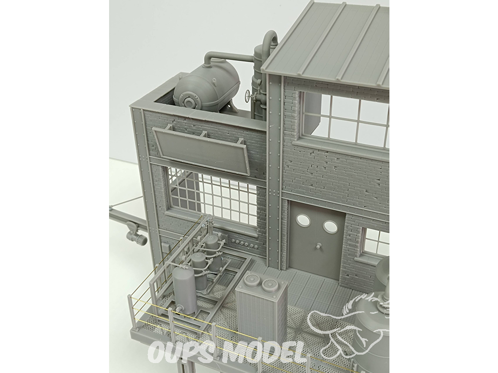 Ce kit de 91 pièces représente une section d'usine à l'échelle 1:35. Conçue et imprimée en 3D en résine de haute qualité, cette scène convient à différentes périodes historiques. Mesurant 30 cm x 18 cm x 34 cm de hauteur, elle regorge de détails et de textures. Les pièces métalliques ne sont pas incluses.