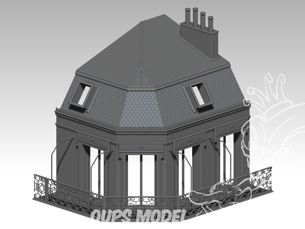 Plan d'un penthouse à l'échelle 1:35, avec possibilité d'ajouter des étages et de le configurer à votre guise.