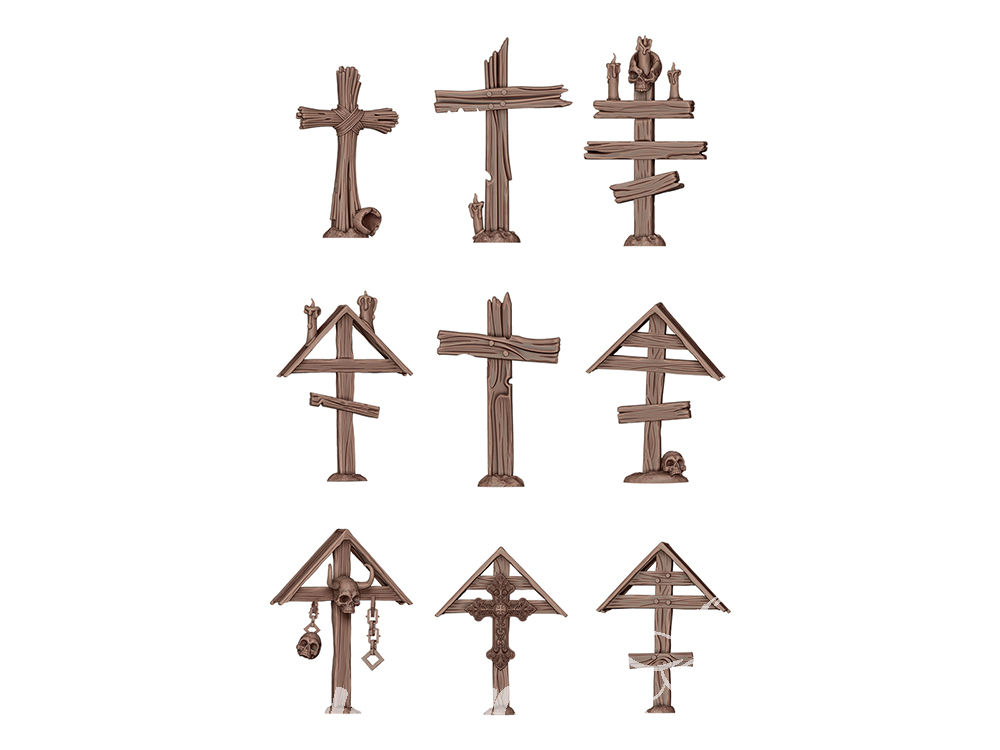 Recréez une atmosphère sombre et narrative dans vos scènes et socles grâce à ces croix en bois rustiques et patinées.