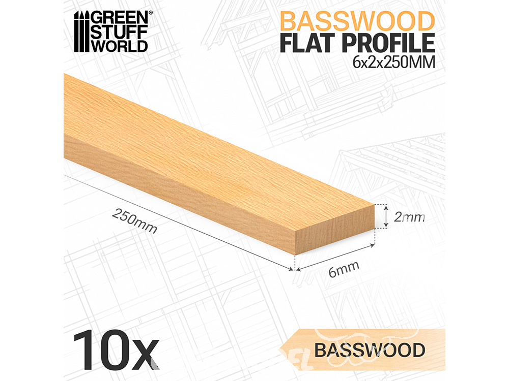 Green Stuff 6317 Bois de tilleul PROFIL PLAT 6x250mm
