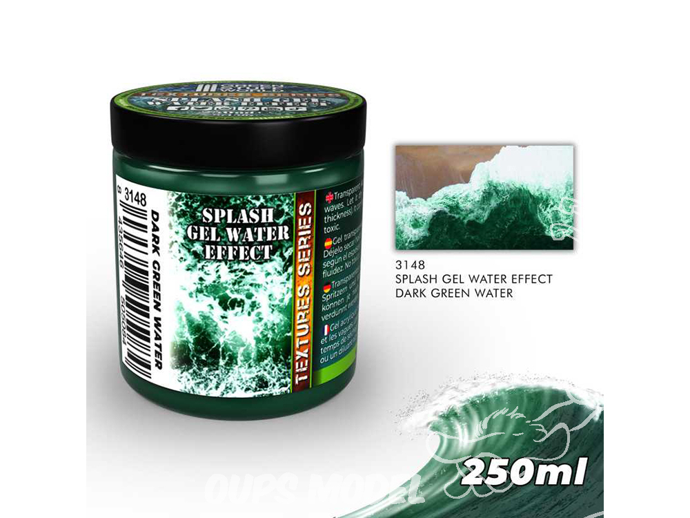 Gel acrylique transparent spécialement conçu pour reproduire l'eau en mouvement, les vagues et les éclaboussures avec une finition réaliste. Il est parfait pour obtenir un effet de profondeur, ainsi qu'une aquarelle réaliste, ce qui le rend idéal pour les dioramas navals ou pour les décors comportant de petits éléments d'eau tels que des ruisseaux et des flaques d'eau.