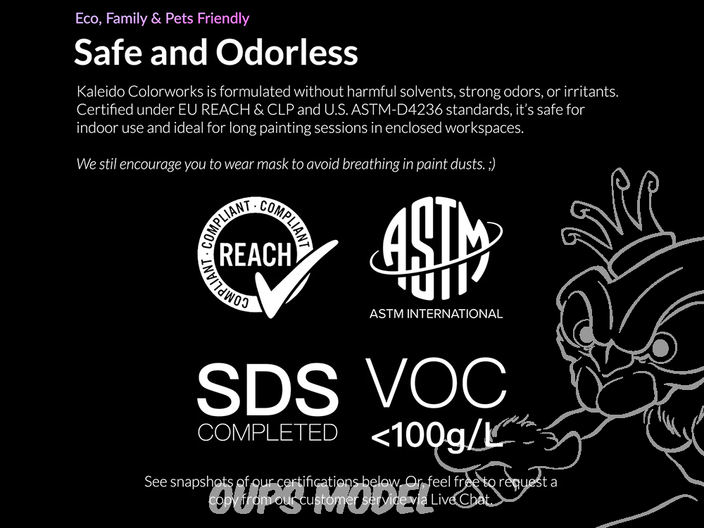 Sûr et inodore : Certifié sûr et écologique, sans solvants nocifs ni odeurs. Entièrement conforme aux normes de sécurité européennes et américaines, idéal pour une utilisation en intérieur.