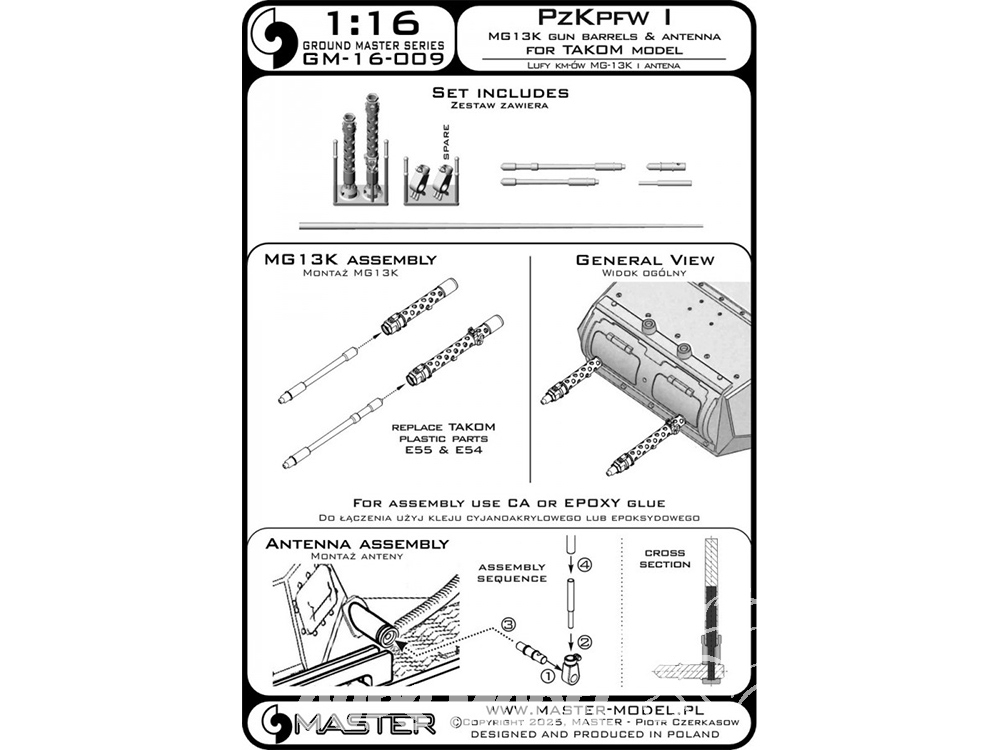 Master Model GM-16-009 PzKpfw I Canons et antenne MG-13K pour kit Takom 1/16