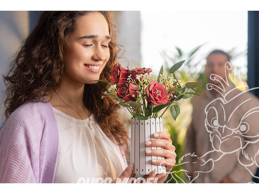 - Kit en bois de haute qualité pour bouquet de roses et vase