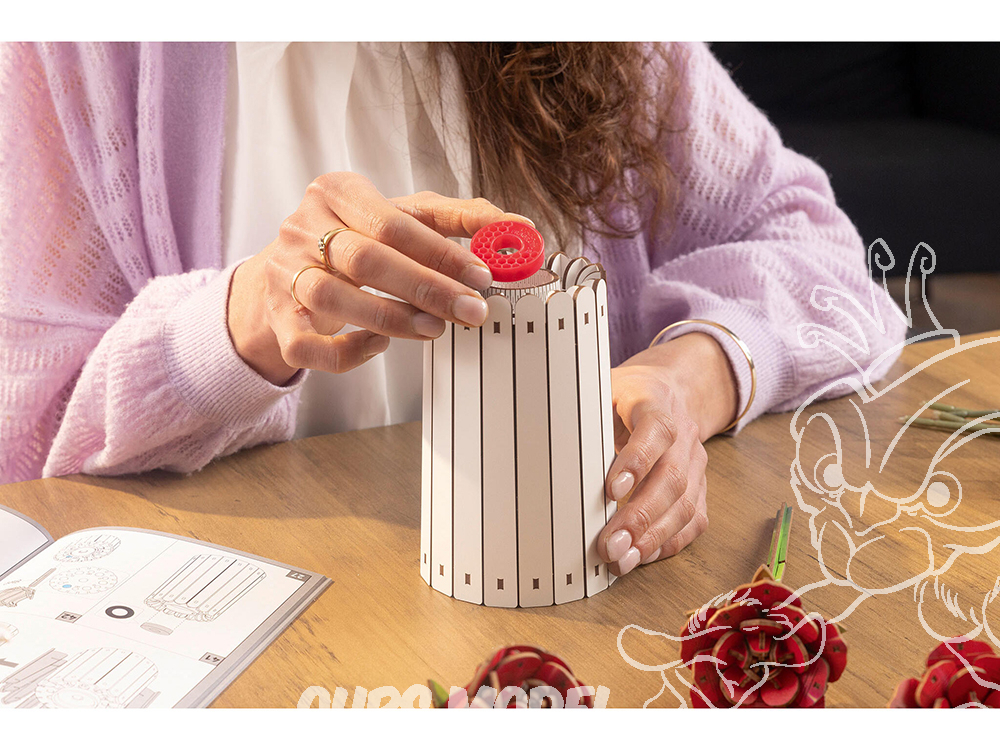 La structure de l'ensemble "Dream of Roses" s'apparente à une méditation. Pièce par pièce, vous assemblez les éléments et regardez la reine des fleurs s'épanouir entre vos mains. Avec un âge recommandé de 14 ans et plus, c'est un projet relaxant pour les jeunes et les adultes. Contrairement aux fleurs artificielles en plastique, le bois dégage une qualité et une chaleur qui mettent en valeur n'importe quelle pièce, que ce soit sur la table à manger, dans la chambre ou comme message de bienvenue dans le couloir.
