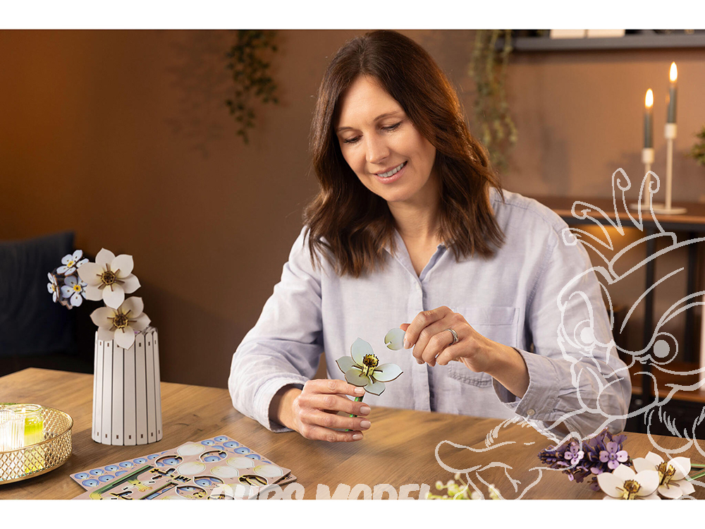 La « Fête des Fleurs » est la preuve que le modélisme ne doit pas toujours être réalisé en plastique gris. Le bois, matériau chaleureux, confère à la pièce une atmosphère naturelle et cosy. Contrairement aux fleurs coupées, qui baissent la tête au bout de quelques jours, cette composition reste fraîche longtemps. C’est la solution idéale pour les pièces peu éclairées ou pour les personnes n’ayant pas la main verte.