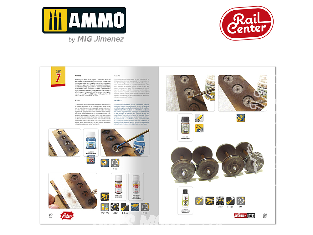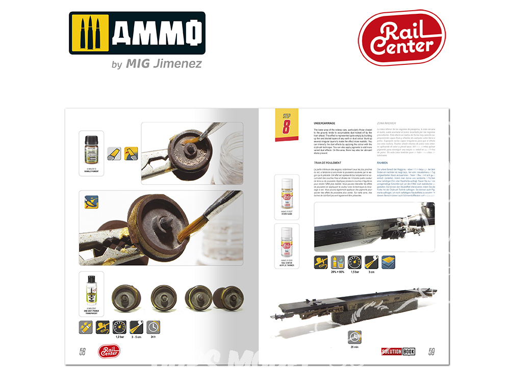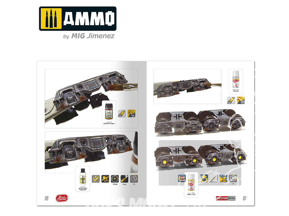 La nouvelle conception de ce guide pratique vous permettra de suivre chaque étape de manière simple et intuitive, sans texte, grâce à un système d'icônes simples qui vous indiquent la marche à suivre. En suivant les étapes de ce guide, vous obtiendrez d'excellents résultats avec un minimum d'effort. Les maquettes à l'échelle 1/87 présentées dans ce guide sont issues des marques les plus courantes. Ce guide propose également des solutions pour la peinture et le traitement des effets de vieillissement sur des maquettes à plus grande échelle, comme les kits proposés par des marques telles que Trumpeter ou Hobby Boss aux échelles 1/72 ou 1/35.