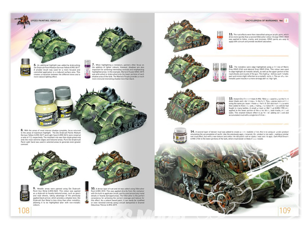 Dans Encyclopedia of Wargames Vol. 2, nous examinerons en détail les techniques de peinture les plus populaires et faciles à appliquer pour les véhicules de wargame, conçues pour obtenir des résultats rapides et efficaces. Ces méthodes sont idéales pour les amateurs qui font leurs premiers pas dans le hobby, ainsi que pour ceux qui privilégient la rapidité et l’efficacité.