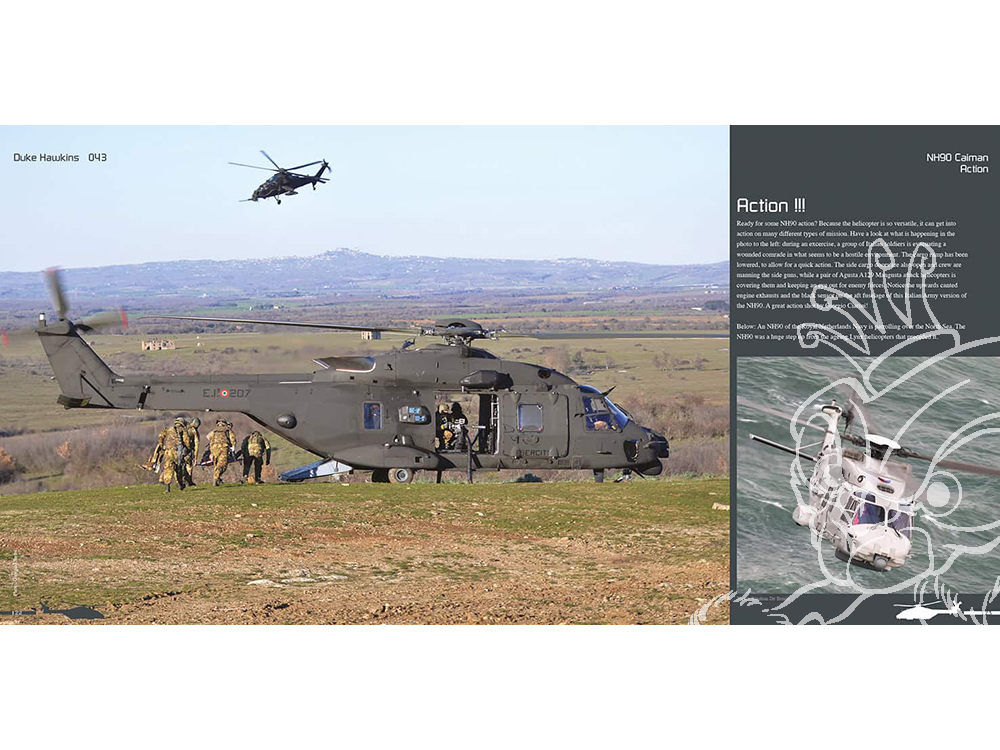 L'hélicoptère NH90, construit par NH Industries, est un hélicoptère militaire de taille moyenne, de fabrication européenne, commandé par 14 forces aériennes différentes. Malgré quelques difficultés lors de sa mise en service, 12 d'entre elles continuent aujourd'hui à l'utiliser. Cet ouvrage, riche de près de 400 photos réparties sur 148 pages, dresse un portrait complet du NH90, tant sur le plan détaillé que sur celui de ses missions. Il comprend notamment un chapitre particulièrement complet consacré à la maintenance. Toutes les versions du NH90 y sont présentées, offrant une description détaillée des différents cockpits, cabines et configurations. On y découvre l'hélicoptère lors de missions de sauvetage, en action au-dessus de l'Afrique, de l'Australie et de la Nouvelle-Zélande, ainsi que lors de missions d'entraînement à travers l'Europe.