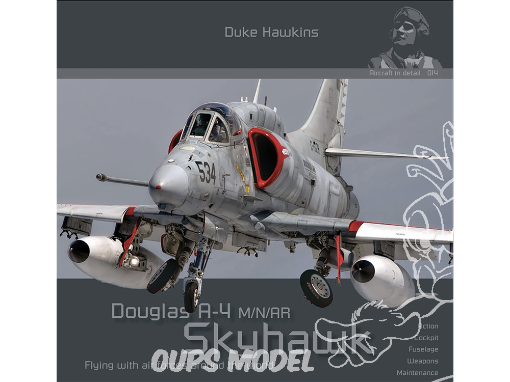 DH-014 apporte un portrait très proche de l'A-4 Skyhawk, plus précisément des versions M, N, AR et AF-1. Les photos de ce livre proviennent des avions Top Aces, mais aussi des forces aériennes d'Argentine, d'Israël et du Brésil. Nous visitons même le porte-avions brésilien Sao Paulo.
