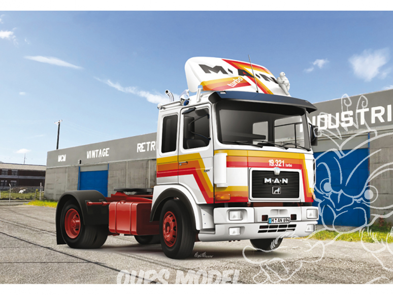 Le MAN F8 a été un énorme succès commercial pour le célèbre constructeur allemand de camions. Il se caractérise par l'union réussie du groupe motopropulseur «made in Germany» fiable avec la cabine conçue et produite en France par Saviem. Équipé d'un moteur avant longitudinal à 6 cylindres en ligne, il a été produit de la fin des années 60 jusqu'au milieu des années 80 et peut être considéré comme une véritable icône du transport routier lourd de ces années. Sa grande diffusion a conduit à la création de nombreuses configurations de châssis et de nombreuses installations dédiées. Le tracteur routier à deux essieux 19.321 peut être considéré comme l'un des modèles les plus polyvalents et a été utilisé dans diverses activités de logistique et de manutention des marchandises.