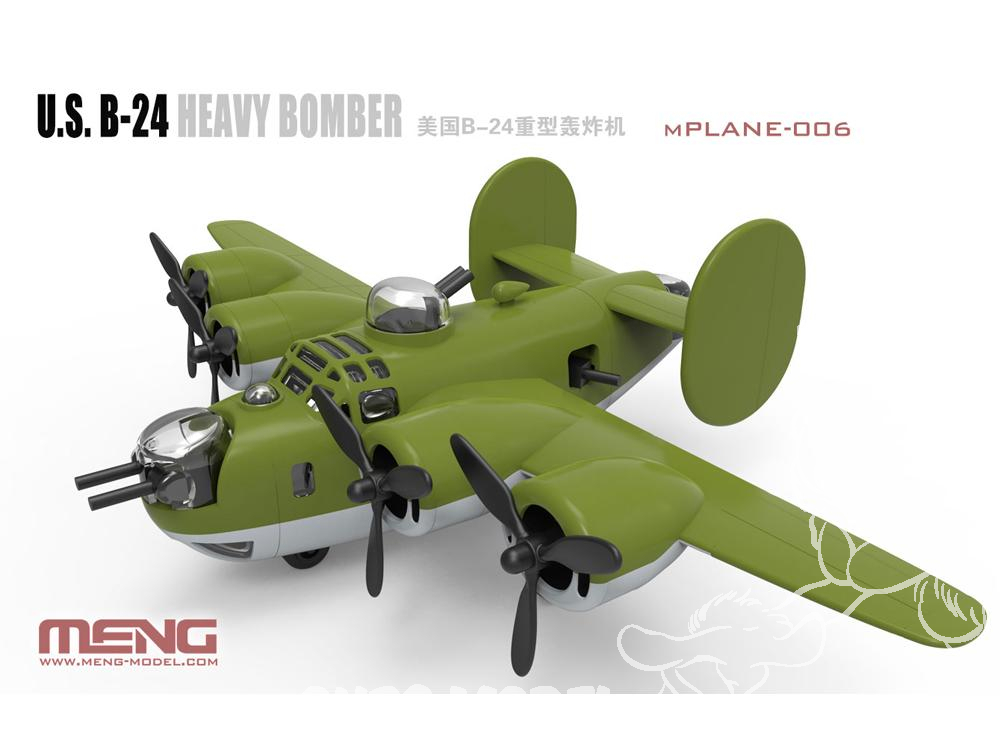 Le bombardier lourd MENG mPLANE-006 US B-24 est le dernier produit de la série MENG mPLANE. Façons BD B-24 a conservé les caractéristiques extérieures du véritable avion sur une forme mignonne. À l'instar des autres produits de bandes dessinées MENG, les produits de la série mPLANE présentent également un design à encliquetage