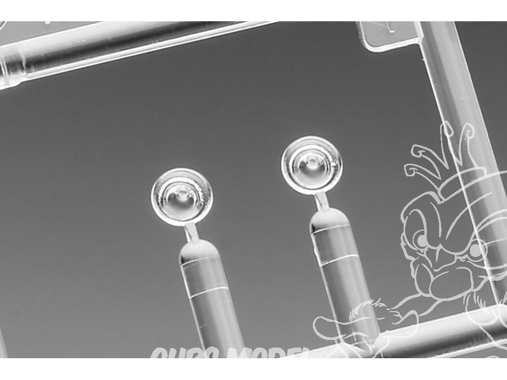 L'extrémité du propulseur est reproduite à l'aide d'une pièce transparente (moulée en bleu transparent).